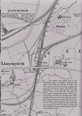 1901 map showing the extent of the station at Llanymynech. Note the turntable.